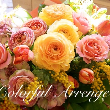 色鮮やかなたくさんのお花を使ったアレンジメント。